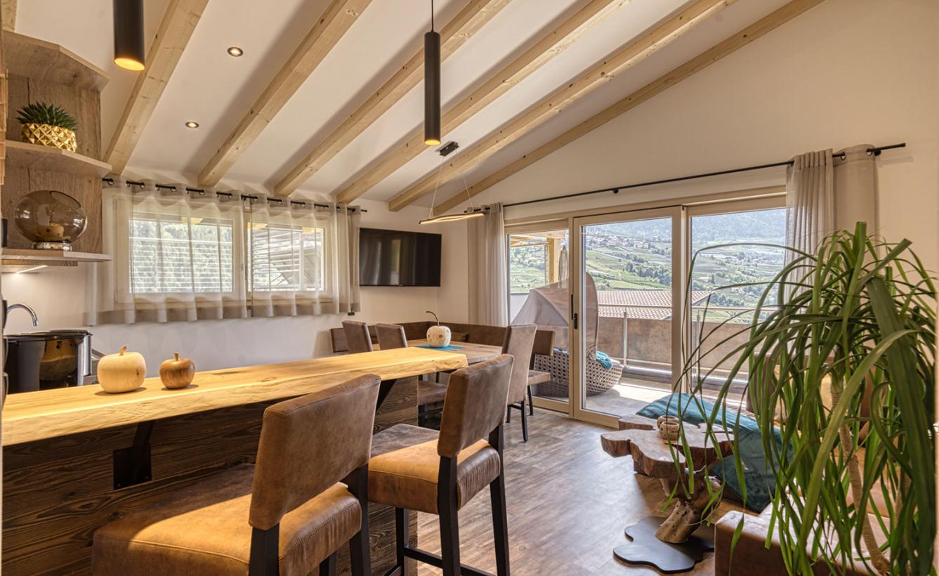 Nel nostro elegante “chalet della mela” - 65 m² di superficie abitativa - il lusso della natura abbinato all’atmosfera tradizionale conferisce un fascino particolare a questo “gioiellino”.